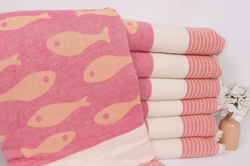 Fish Design Sarı-Kırmızı Pamuklu Battaniye, Kişiye Özel, 77x91 İnç