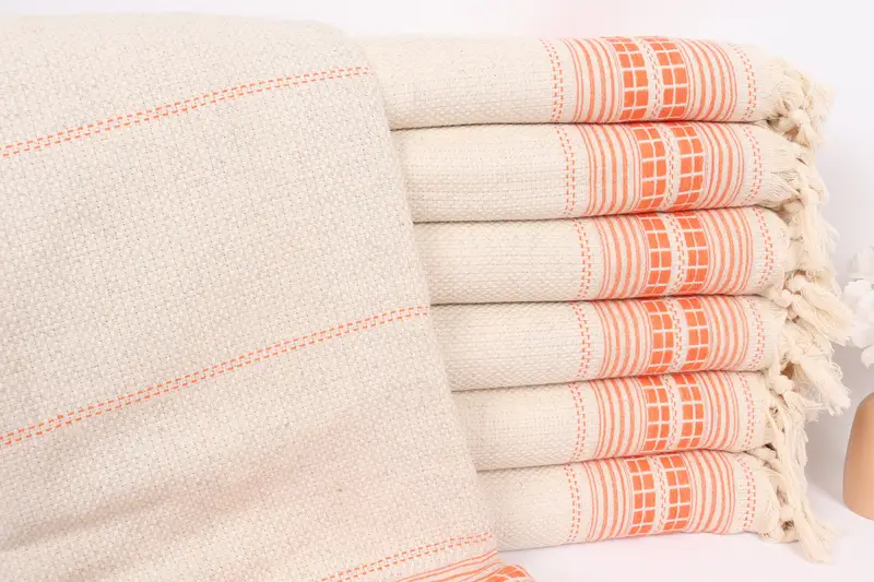 Turuncu Keten Şal Alt Kategori Battaniye ve Şal Bej 93x95 İnç