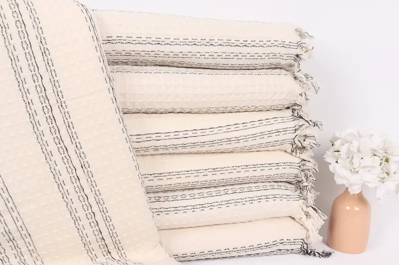 Bachelorette Çizgili Şal Krem Organik Pamuk, 71x95 İnç