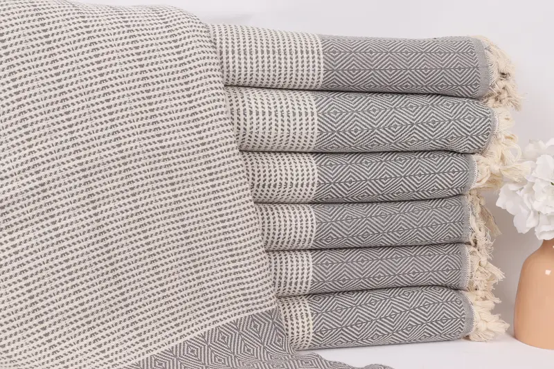 Monogram Battaniye Koyu Gri Pamuklu 71x79 İnç, Organik Geri Dönüştürülmüş