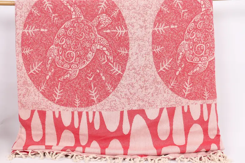 Yatak Örtüsü Kırmızı Pamuklu Battaniye Kaplumbağa Tasarımı, 79x99 İnç