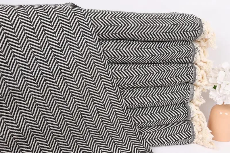 Siyah Pamuklu Kişiselleştirilmiş Battaniye, Chevron, 75x91 İnç