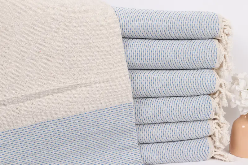 Dokuma Petrol Mavisi Pamuklu Atkı, Monogram Puantiyeli, 95x95 İnç
