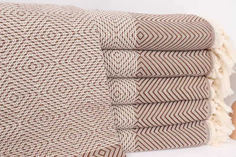 Diamond Battaniye Kişiye Özel Monogram Kahverengi Pamuklu Örtü, 79x91 İnç