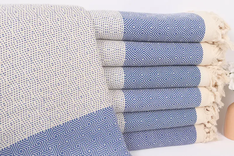 Elmas Atkı Dokuma Pamuk Patchwork Atkı, Saks Mavisi, 79x103 İnç
