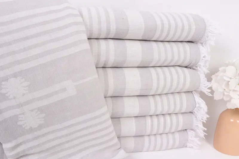 Kişiye Özel Gri Pamuk Battaniye, Bordürlü Desen, 60x83