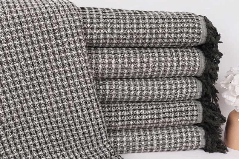 Dokuma Haki Yeşil Çizgili Türk Pamuk Battaniye, 71x95 İnç