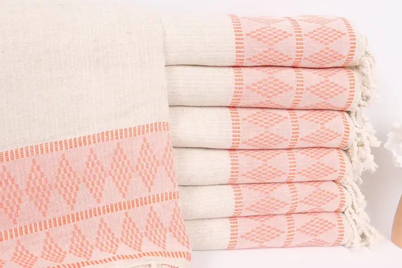 Turuncu Keten Koltuk Takımı 87x99 İnç, Pamuklu, İkat Desenli, Rustik Tasarım
