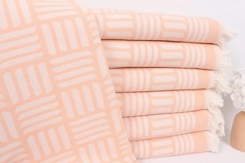 Geometrik Mercan Pamuklu Battaniye, 87x95 İnç, Organik, Boyalı, Kapitone