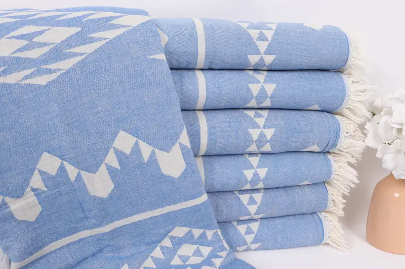 Geometrik Atma Saks Mavisi Pamuk, 60x71 İnç, Bebek Yatağı Boyutu