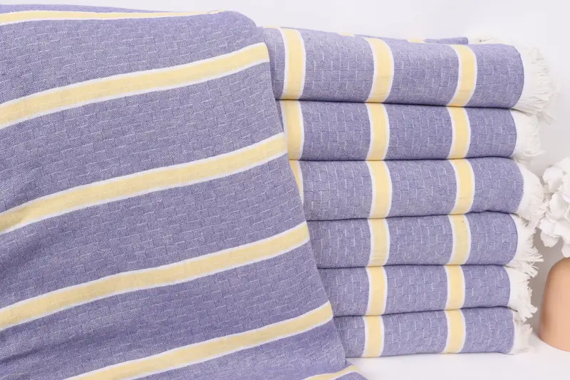 Battaniye Mor-Sarı Pamuk Çizgili, Bekarlığa Veda Hediyeleri, 83x95 İnç