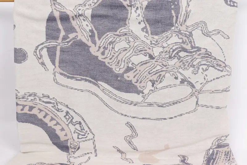 Dekoratif Lacivert-Kahve Pamuk Şal, Desenli Ayakkabı, 79x95 İnç