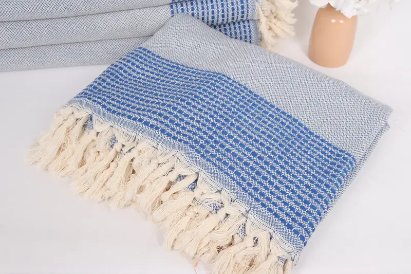 Sax Mavi Pamuk Çizgili Battaniye, Masa Örtüsü, 91x95 İnç