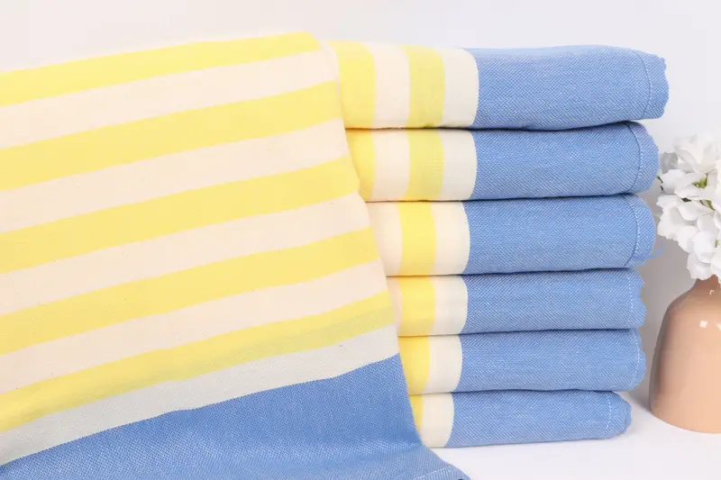 Kişiye Özel Pamuk Çizgili Püskülsüz Atma, Mavi-Sarı, 60x63 İnç