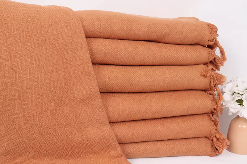 Türk Battaniyesi Kahverengi Pamuklu Atma Taşlanmış Elmas, 79x107 İnç