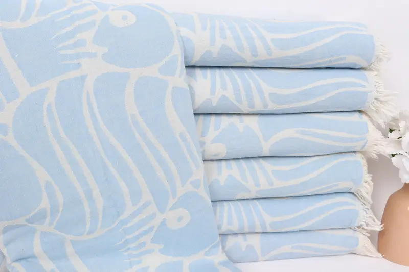 Koyu Bebek Mavi Balık Tasarım Pamuk Battaniye, Masa Örtüsü, 60x71 İnç