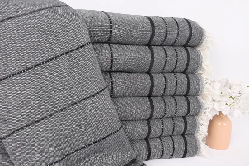 Kişiye Özel Çizgili Battaniye 79x99 İnç Koyu Gri-Siyah Pamuklu