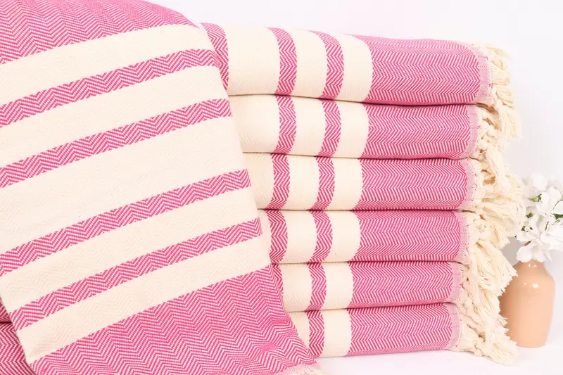 Balıksırtı Battaniye Fuşya Pamuk 79x95 İnç, Gelin Partisi Hediyesi