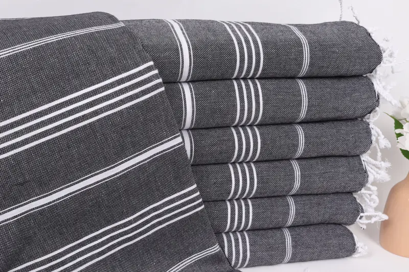 Çizgili Battaniye Monogram Siyah Pamuk Bej 79x95 İnç