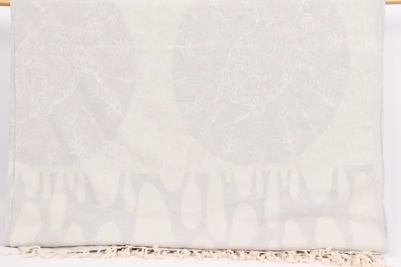 79x99 İnç Açık Gri Kaplumbağa Desenli Pamuklu Battaniye, Beşik Boyutu