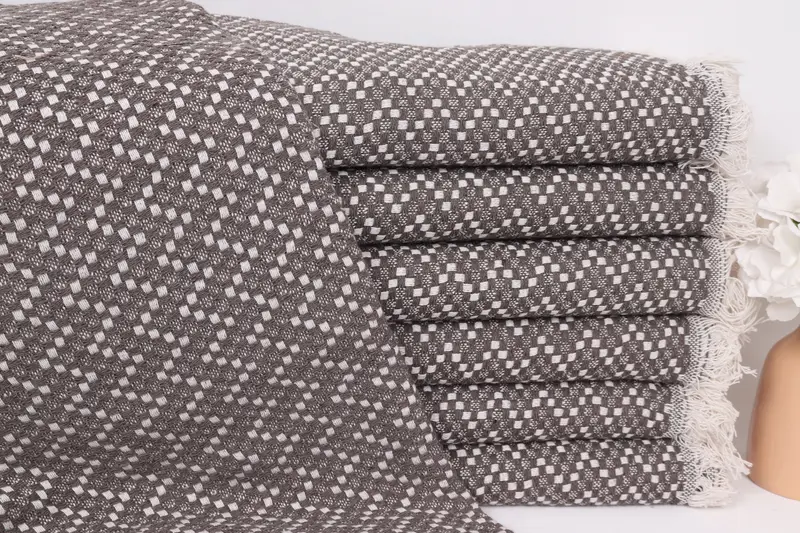 Gelin Hediyesi Hediyesi Koyu Kahverengi Pamuk Balıksırtı Battaniye, 67x75 İnç
