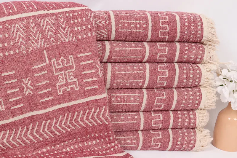 Nedime Hediyeleri Özel Battaniye Kırmızı Pamuk Kilim Tasarım Atmak, 56x75 İnç