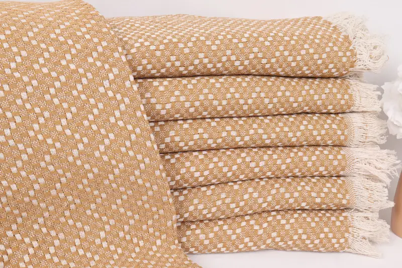 Monogram Hardallı Pamuklu Battaniye, 67x75 İnç, Organik Türk