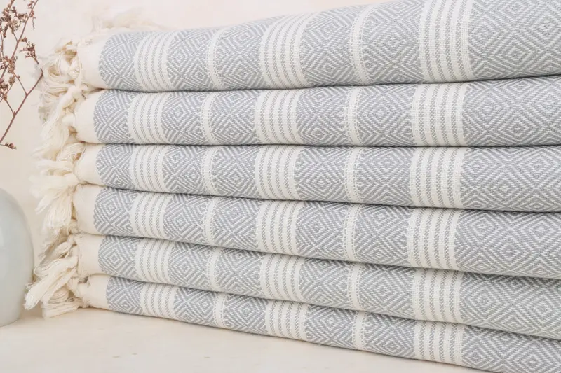 Monogramlı Plaj Havlusu Özel Açık Gri Elmas Havlu, 38x69 İnç