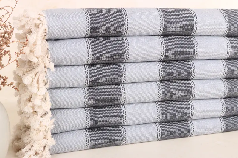 Türk Havlusu Siyah-Bebek Mavisi Pamuk Şerit, 36x67 İnç