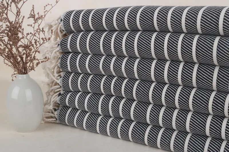 Kişiye Özel Siyah Bambu Çizgili Plaj Havlusu, Organik Pamuk, 40x75 İnç