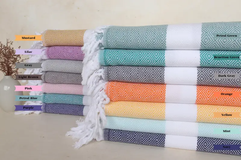 Türk Plaj Havlusu Organik Pamuk Bej El Dokuma, 40x70 İnç