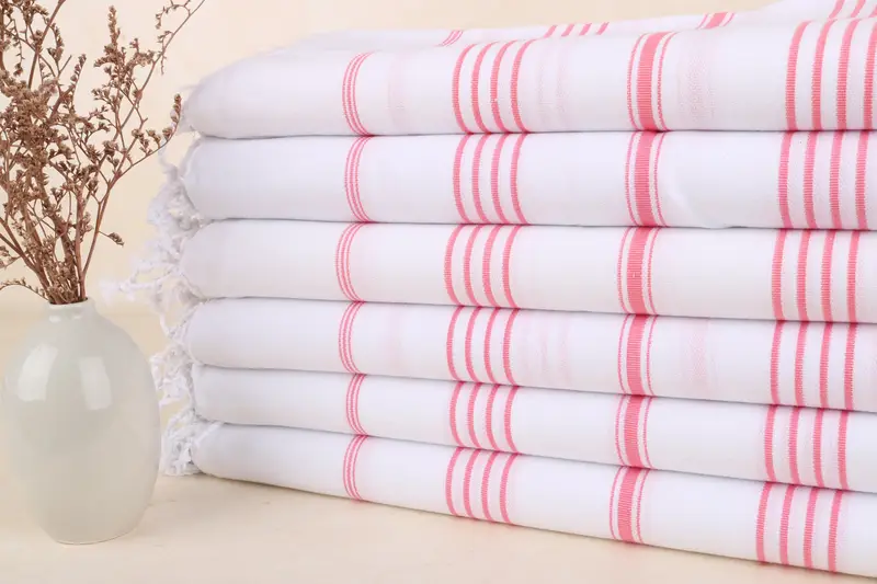 Plaj Havlusu Monogramlı Türk Pamuk Vermilyon Çizgili, 40x71 İnç