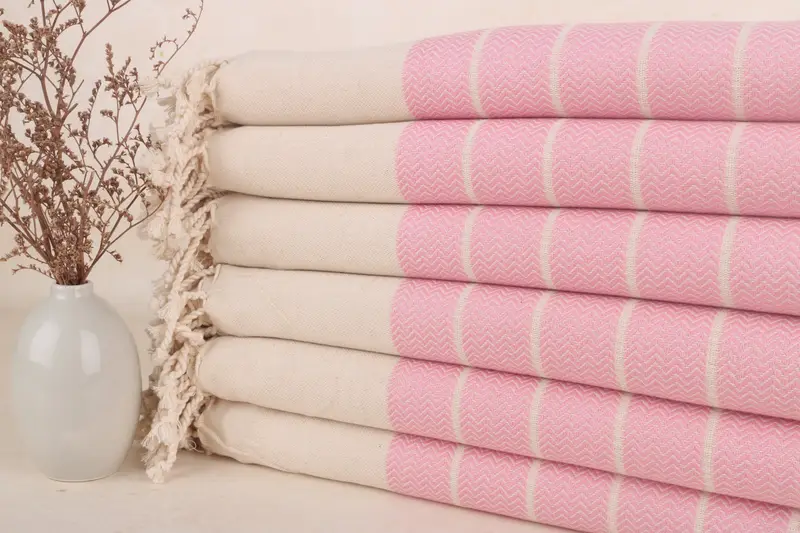 Plaj Havlusu Pembe Keten Zig Zag, 40x67 İnç, Bej İkincil