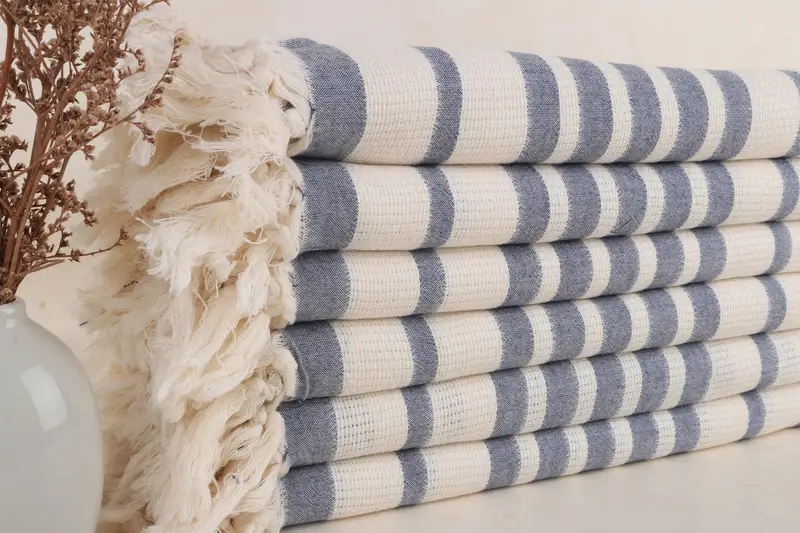 Kişiye Özel Plaj Havlusu Lacivert Çizgili Türk Pamuğu, 34x71 İnç