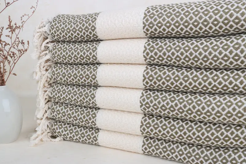 Kişiye Özel Türk Plaj Havlusu, Açık Haki Yeşil Geometrik, 40x71 İnç