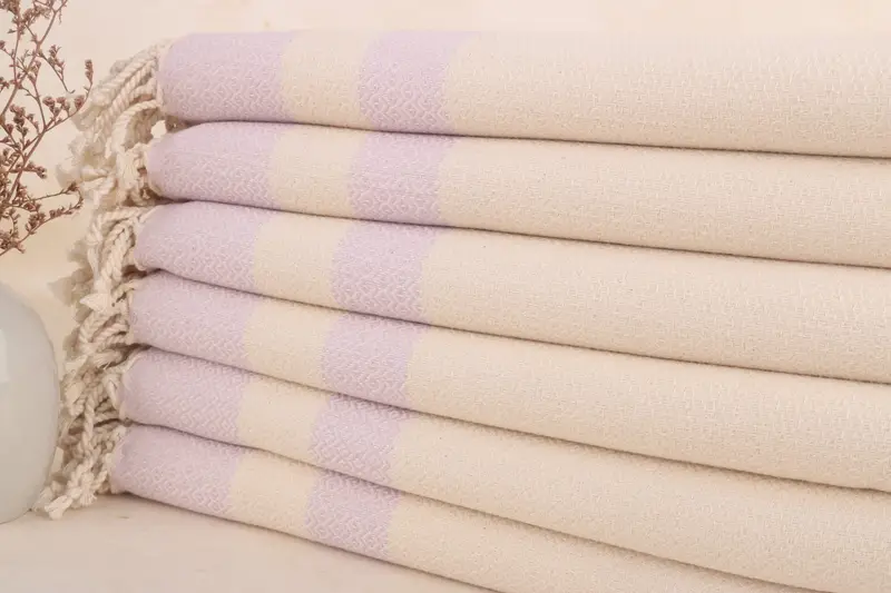 Plaj Havlusu Geometrik Lila Pamuk Havlu, Organik Türk Pamuğu, 40x71 İnç
