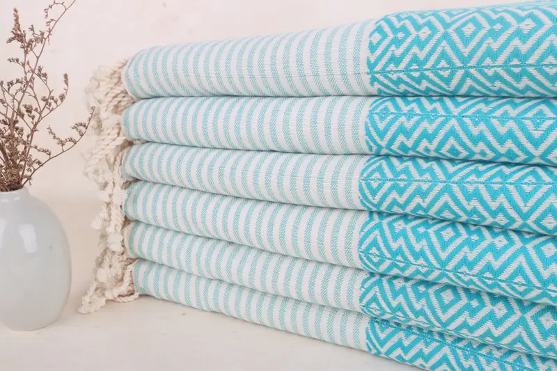 Plaj Havlusu Türk Pamuğu Turkuaz ve Bej, 38x75 İnç