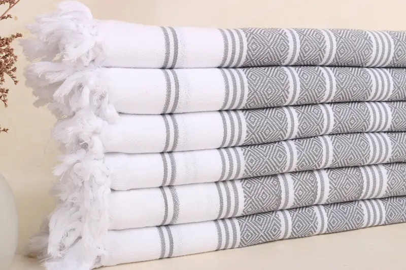 Plaj Havlusu Kişiye Özel Beyaz-Gri Pamuklu, El Yapımı, 40x71 İnç