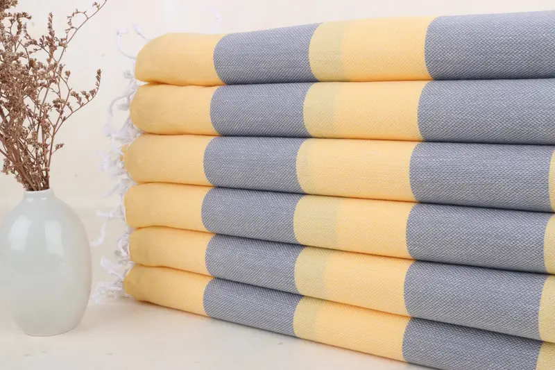 Kişiye Özel Koyu Gri-Hardal Çizgili Plaj Havlusu, 40x71 İnç