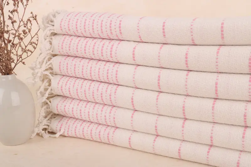 Kapadokya Tasarım Türk Pamuklu Plaj Havlusu Pembe, 38x71 İnç