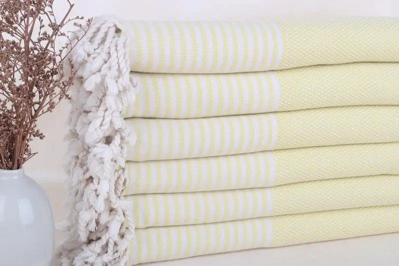 Türk Plaj Havlusu Monogramlı Açık Sarı Çizgili, 32x67 İnç