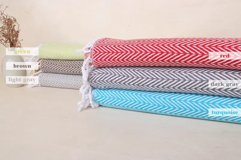 Kişiye Özel Zig Zag Organik Pamuk Plaj Havlusu, Bej, 40x67 İnç