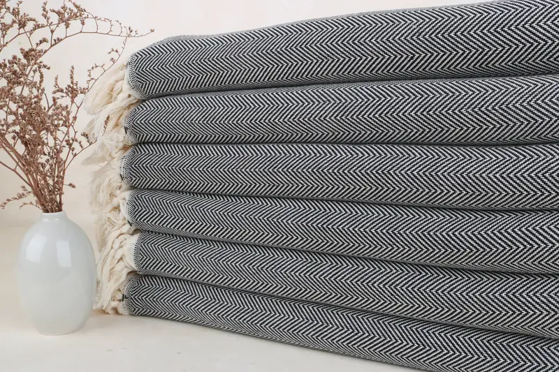 Türk Plaj Havlusu Siyah Balıksırtı, Bej, Organik Pamuk, 40x71 İnç