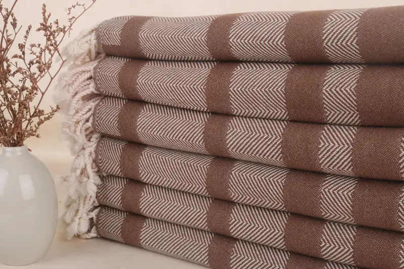 Kişiye Özel Chevron Türk Pamuk Plaj Havlusu, Bejli Kahve, 38x67 İnç
