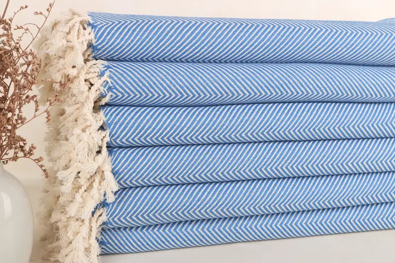 Petrol Mavisi Pamuk Balıksırtı Plaj Havlusu, Organik, 40x71 İnç