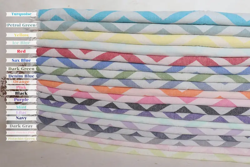 Plaj Havlusu Organik Pamuk Zigzag Tasarım Bej El Yapımı, 40x71 İnç