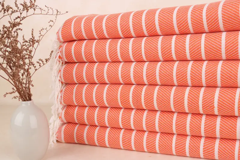 Plaj Havlusu Balıksırtı Turuncu Bambu Havlu, 40x71 İnç