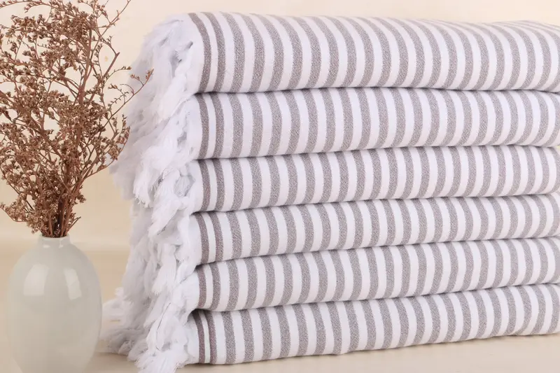 Türk Plaj Havlusu Özel Kahverengi Havlu Çizgili, Bej, Organik Pamuk, 36x71 İnç