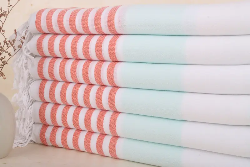 Kişiye Özel Nane-Turuncu Pamuk Plaj Havlusu, 40x71 İnç, Organik