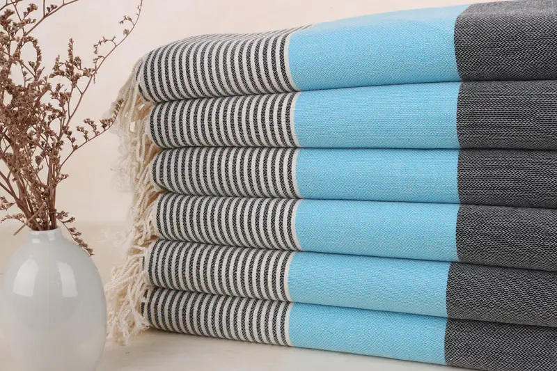 Dokuma Türk plaj havluları, yoga, piknik ve spa seansları gibi çeşitli kullanımlar için yüksek emicilik ve konfor sağlayan %100 organik Türk pamuğundan üretilmiştir. Hafif ve yerden tasarruf sağlayan bir çözümle sonuçlanan bu havlular, 1-2,5 cm toleransla 67x40 inç veya 100x170 cm boyutlarında olup çok yönlülük ve geniş kapsama alanı sağlar. Kişiselleştirme seçenekleri arasında monogramlama, kişiselleştirme ve pamuklu etiket dikimi yer alır ve bunların tümü sevkıyattan önce tamamlanır. Müşterilere havluları önceden yıkamaları tavsiye edilir ve ...